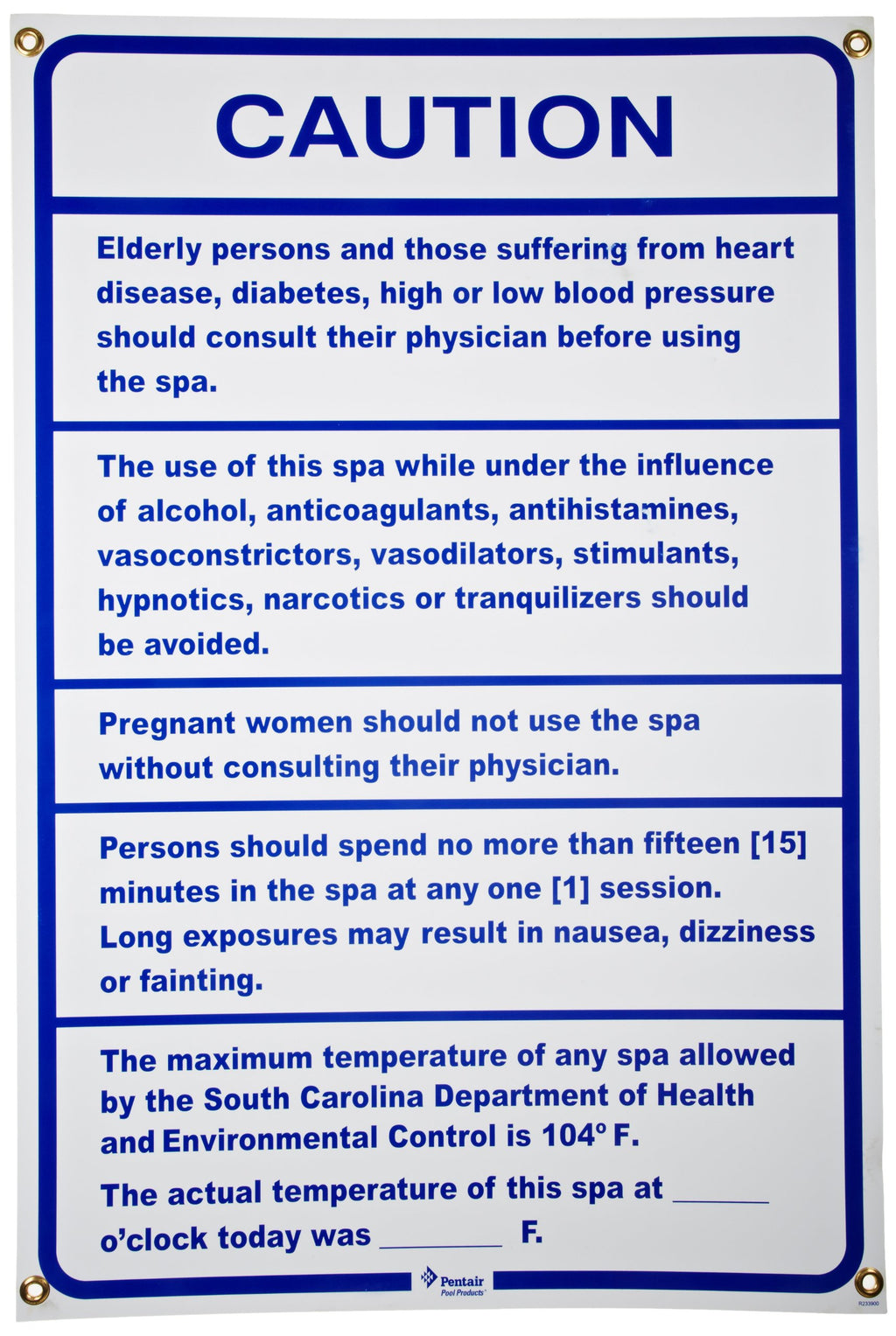 Pentair Spa Rules Safety Sign — a large 24" x 36" wall-mount sign from Pentair designed to keep spa areas safe and compliant.
