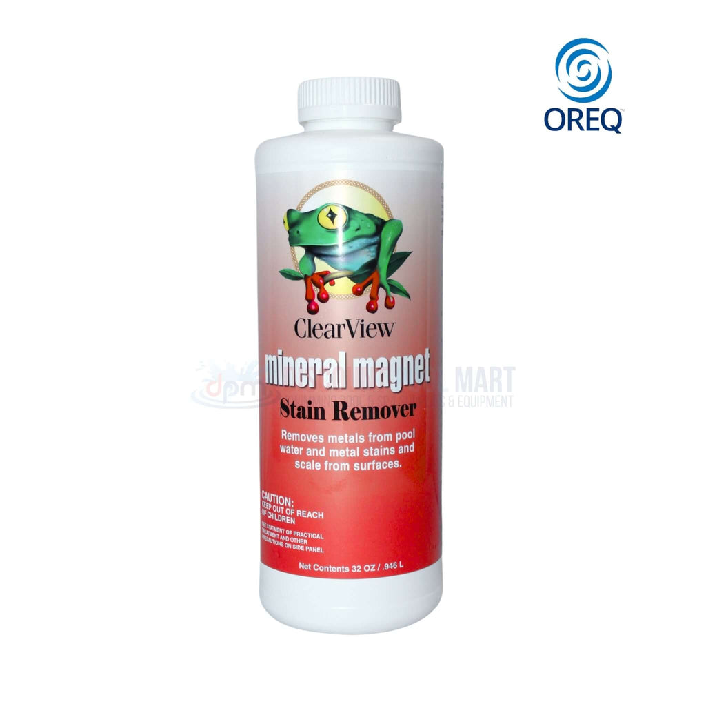 - For pools with iron, copper, manganese and other metals present in the water, apply Mineral Magnet over entire surface with filter system operating. For best results use 32 ounces of this product per 10,000 gallons of water to remove stains, prevent plating and restore water clarity.