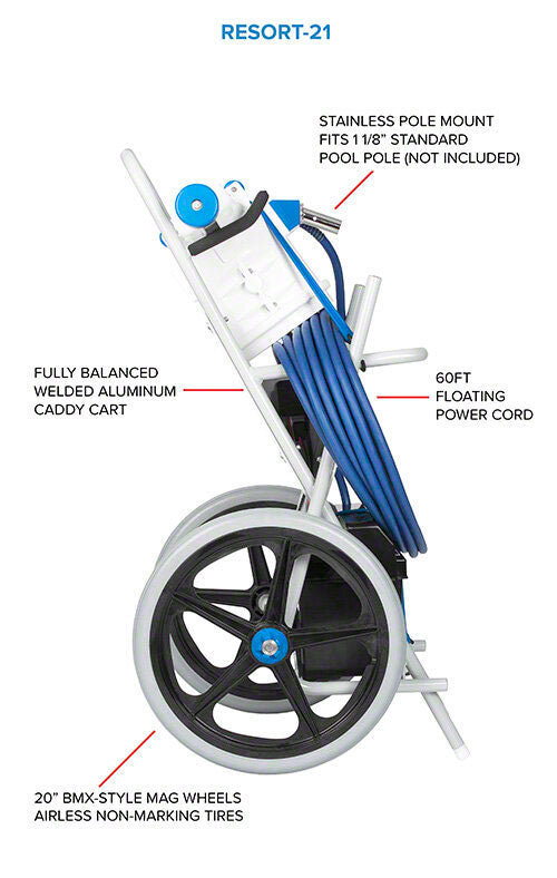 Caddy cart included: Easy transport and organized storage for pool teams and service pros.