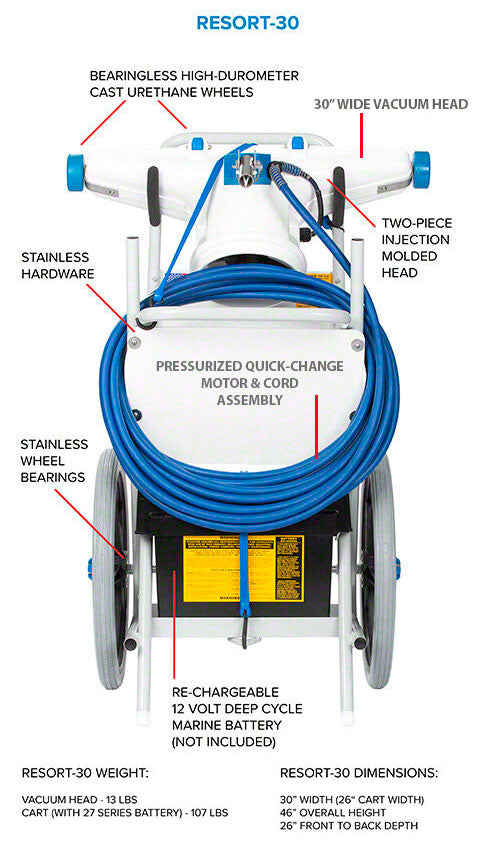 Hammerhead Resort Vacuum HH9120 — 30" Head, 60' Cord by Duckies Pool Supply