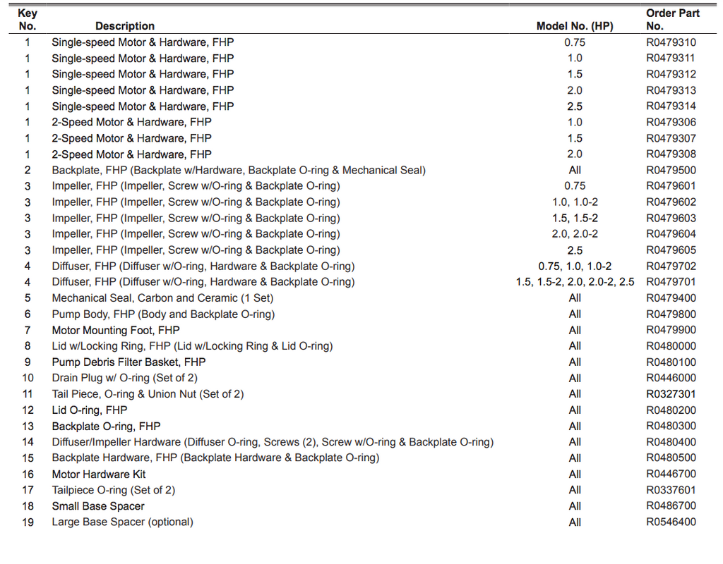 Jandy Item Codes: FHPM.75CND, FHPM1.0CND, and FHPM1.5CND