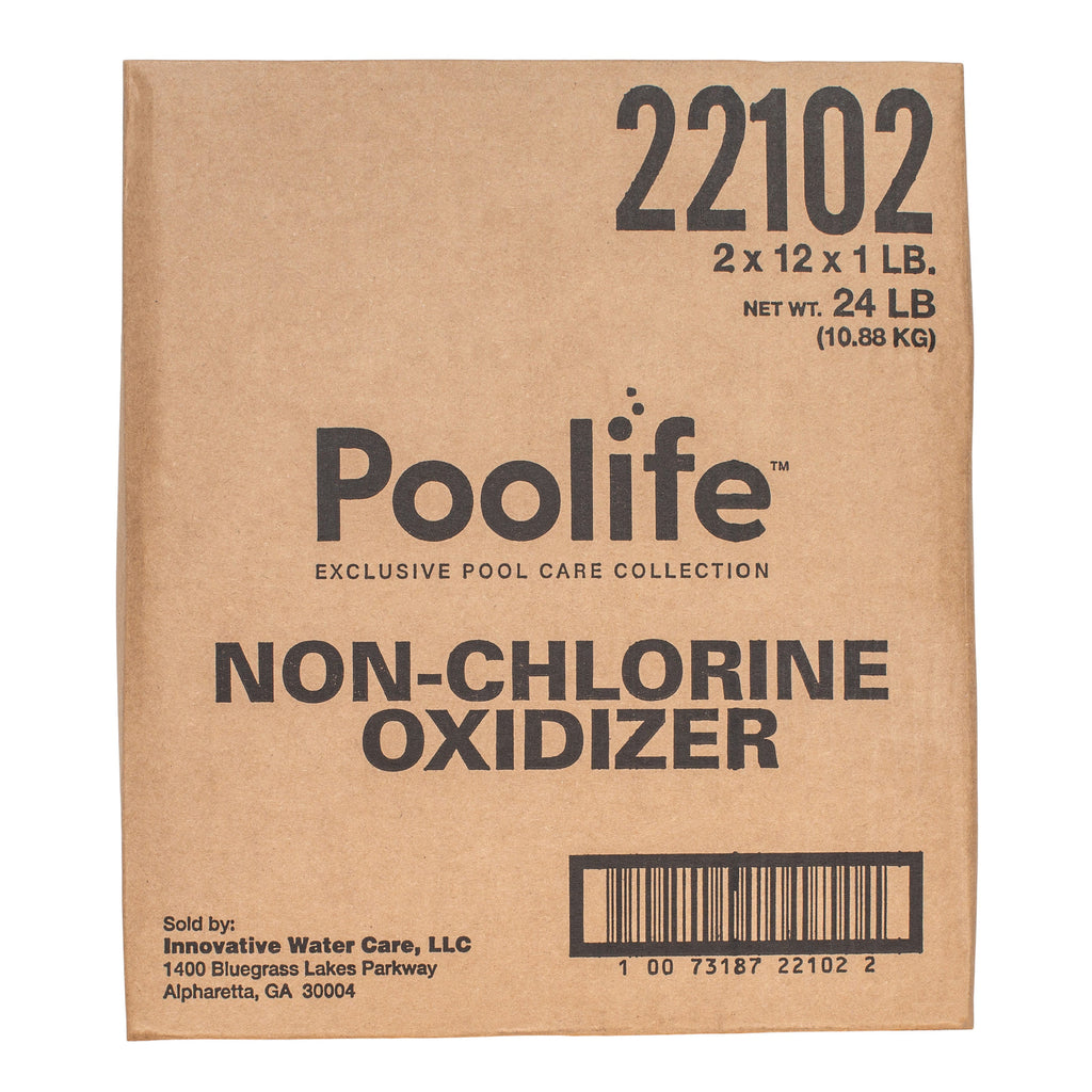 Poolife Non Chlorine Oxidizer is a great shock to destroy soluble organic contaminates without adding chlorine to your pool. Swimming can resume in as few as 15 minutes after using this product.